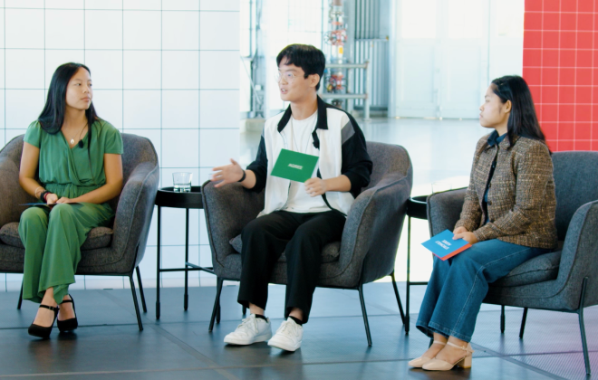 APIA Scholars share their backgrounds and engage in a lively dialogue inspired by the “Spectrum” format, where participants respond to thought-provoking questions. Scholar guests from Center College in Kentucky, Purdue University, and Metropolitan State University discuss student life, their motivations, and their views on identity and culture. The conversation fosters an open exchange, celebrating both individual journeys and collective experiences, as facilitated by Anna Cathcart and Jason Y. Lee.
